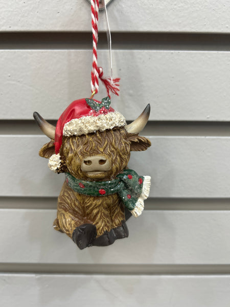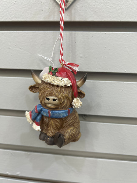 HOLIDAY HIGHLAND COW ORNAMENT 3 ASSORTED