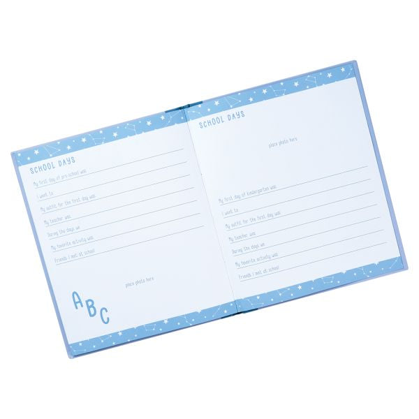 Capture the cherished moments of your baby's first years with the Little Blossom's First 5 Years Blue Constellation Baby Memory Book. Adorned with a blue constellation design, this keepsake is perfect for preserving milestones and memories. The cover features dedicated spaces for a baby photo and a personalized footprint, with an included inkpad for effortless imprinting.