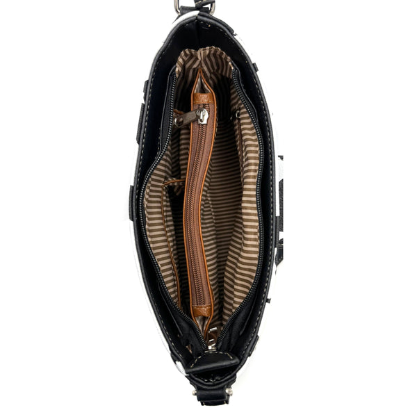 Crown Buckle Beige Cow Print Floral Western Crossbody Bucket Bag