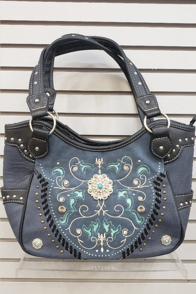 • Featuring delicate floral details and an elegant concho accent, this purse effortlessly combines sophistication and practicality.