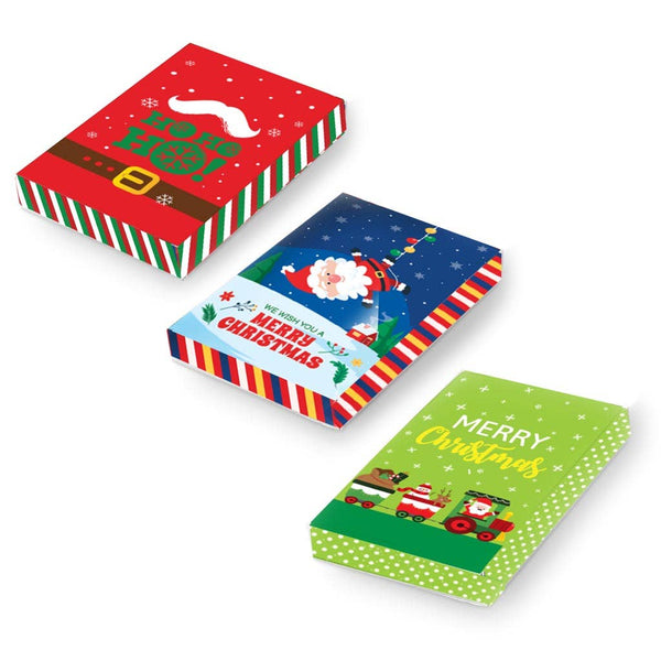 Stylish large Christmas gift boxes for clothing, toys, and winter accessories. Includes 3 assorted designs featuring holiday prints with smooth finish and firm structure. Ships flat for convenient storage and quick assembly. Great for the holidays.