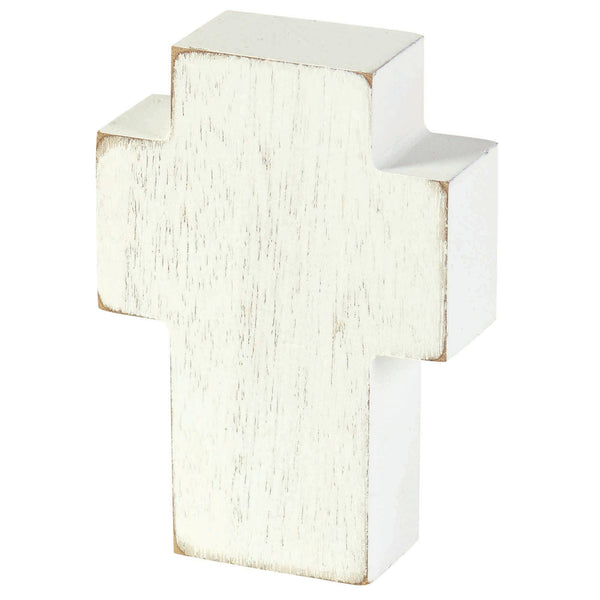 A comforting small gift in times of bereavement is this tabletop cross with the poem Angel's Wings: On angel's wings our loved one flies with graceful speed to heaven's skies. To God's embrace and words "Well Done. Welcome home my faithful one." Includes a lovely angel wing design. Sides and back have white wash tone with vintage distressed edges. Size is 2 3/4" x 4" x 1"; made of MDF wood. Poem is copyright Ron Tranmer.