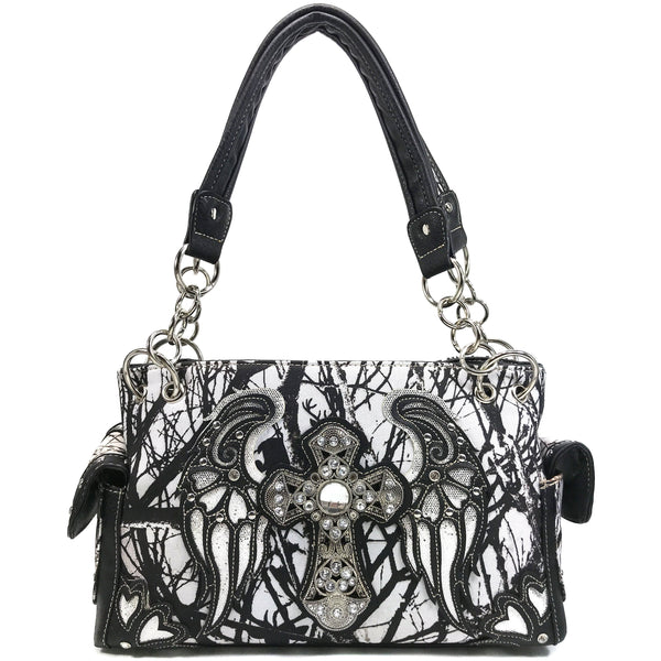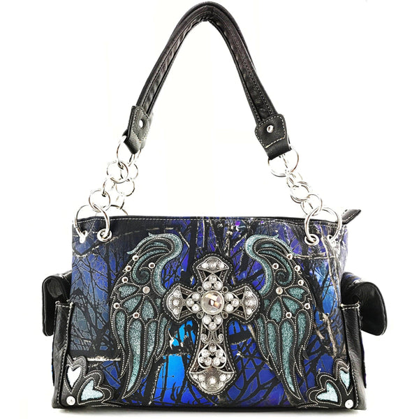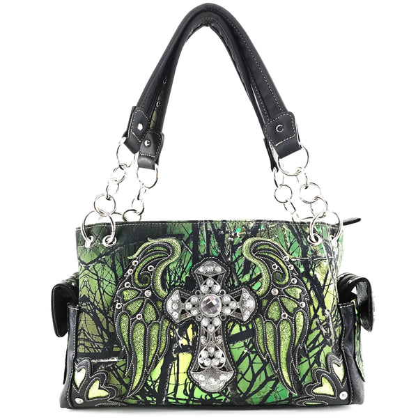 Cross Angel Wings Tree Camouflage Women's Handbag Purse