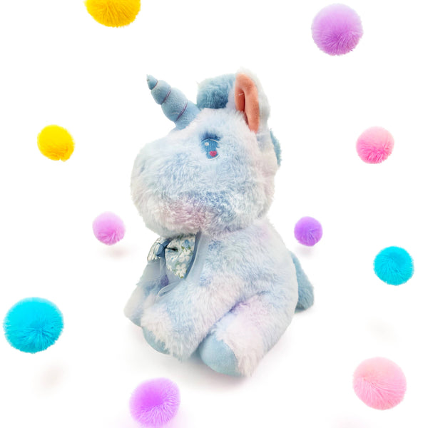 Blue Unicorn Plush Toy with Bow (10" / 26 cm)
