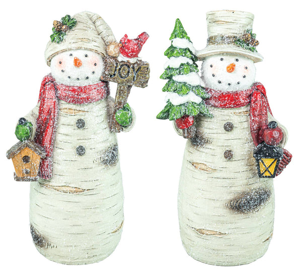 Bring the enchanting beauty of a snowy woodland to your home with this BIRCH SNOWMAN TABLETOP assortment 2 designs to choose from. Handcrafted from high-quality resin with a realistic birch bark finish, this charming snowman stands tall with cheerful cardinals perched on his arms, and festive Christmas highlights , adding a pop of festive color. Dressed in a cozy plaid scarf and topped with a classic top hat, this piece blends rustic elegance with heartwarming holiday spirit—perfect for mantels, entryways, or tabletops. Perfect For: • Farmhouse or cabin holiday styling • Nature-inspired Christmas displays • Gift for bird lovers and rustic decor enthusiasts Let this snowy duo bring the magic of a winter forest into your home! DIM:3.5"X2.3"X6.7"